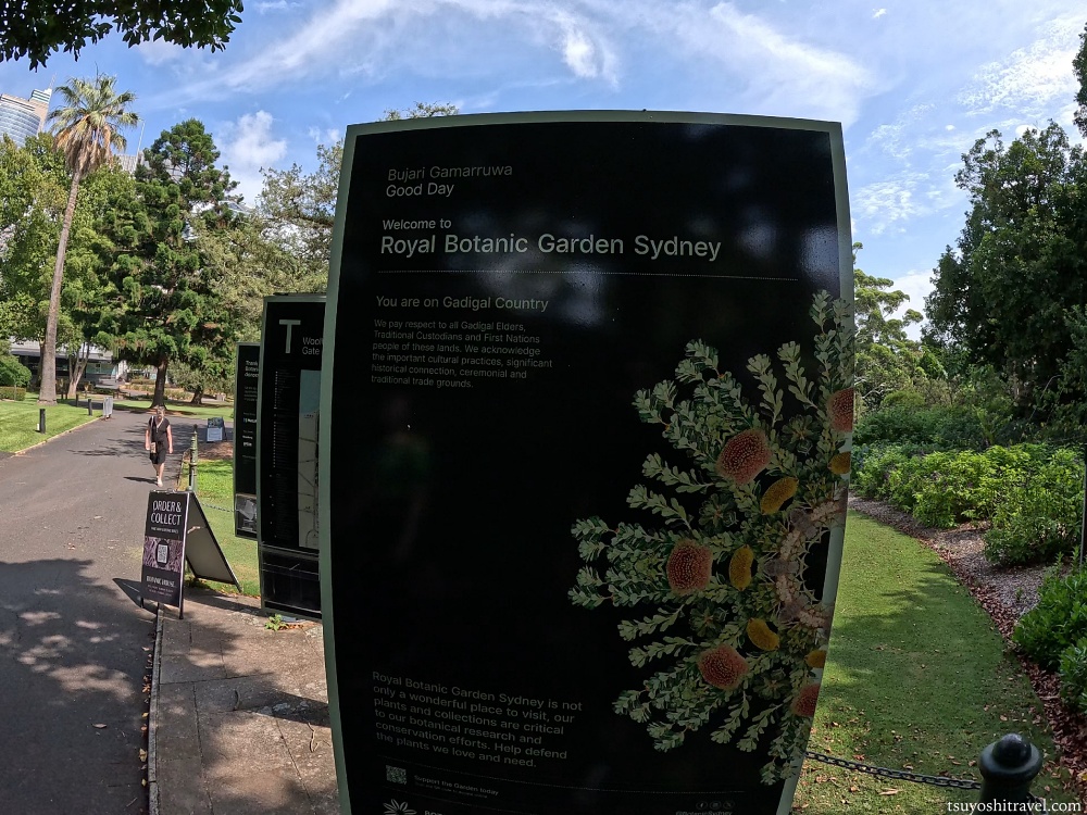 園内へ入ると最初に目につくものが、「ようこそボタニカルガーデンシドニーへ」という看板。