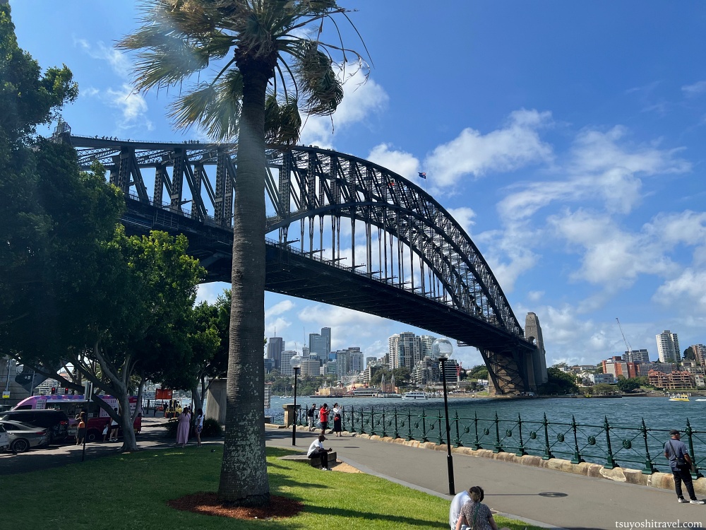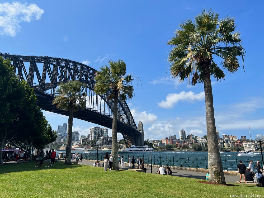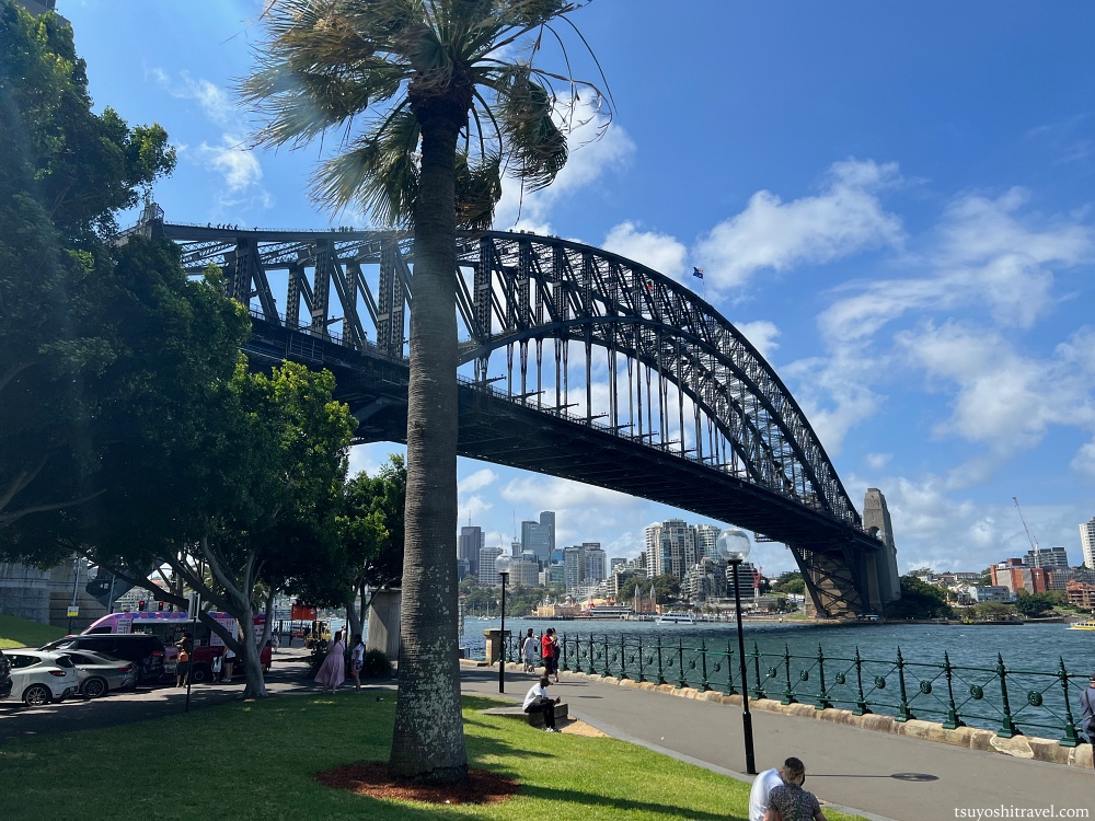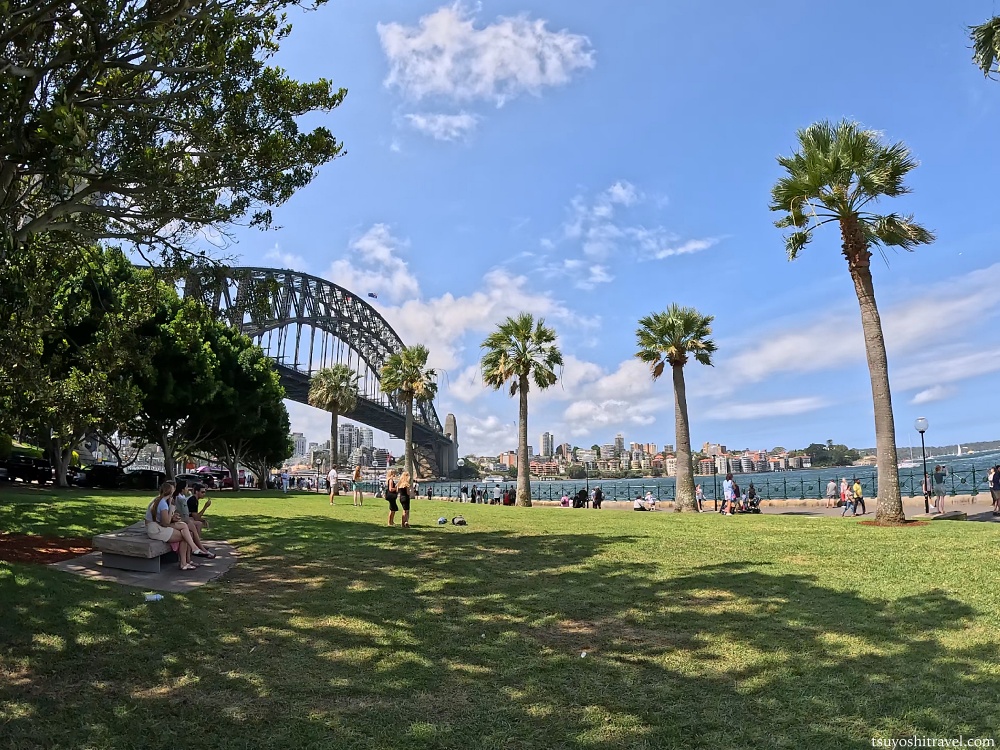 ハーバーブリッジの手間には、緑色の芝生広場が一面に広がっていて、ハーバーブリッジを見るにはベストスポットです。
