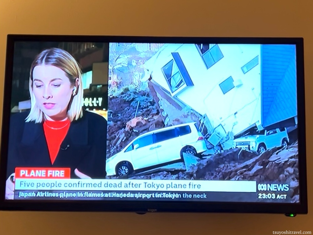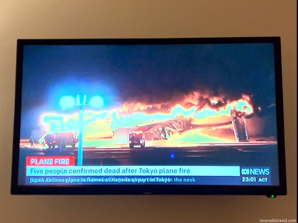 ホテルの評価とは全く関係が無いですが、スーパーマーケットに買い出しに行く途中のスマートフォンのネットニュースでこの日日本で発生した羽田空港の地上衝突事故の一報に触れました。