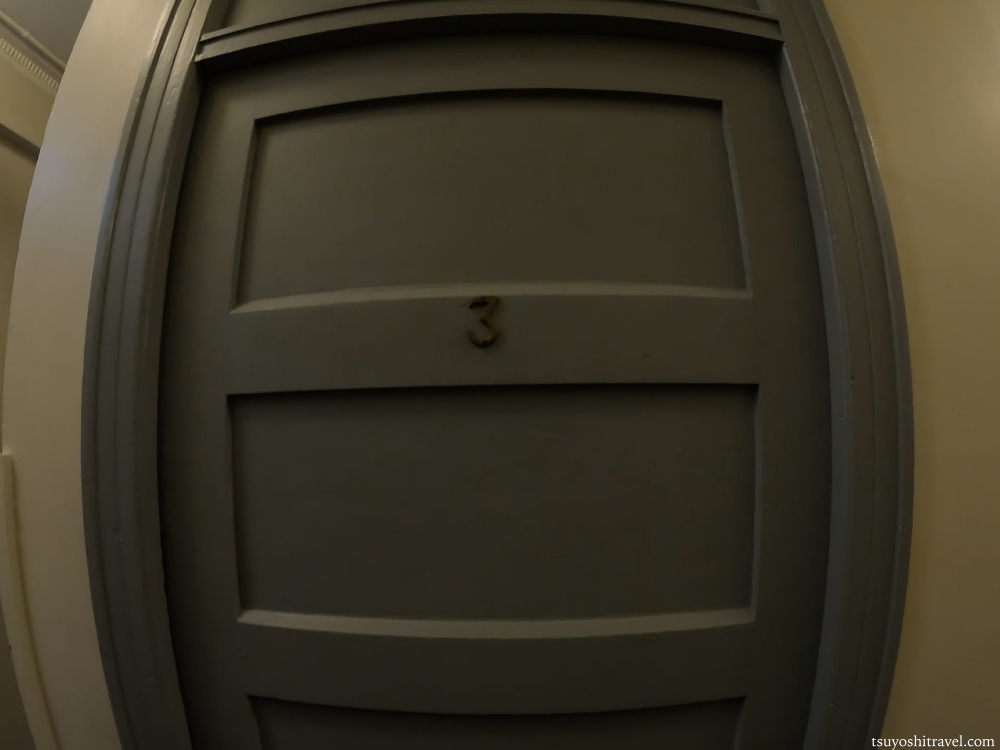 2階に上がって、少し年期の入った廊下を通り、鍵の番号と同じ3番の部屋の扉を開けます。