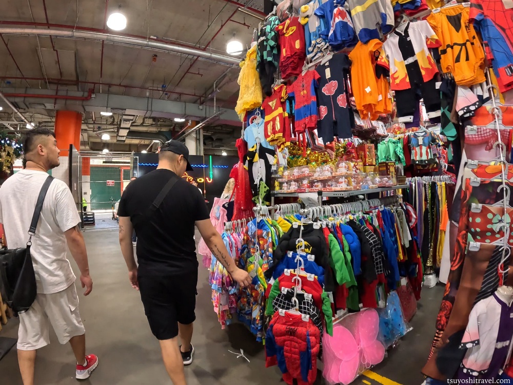 店内はどこかコストコに似た雰囲気ですが、新品の衣類などがずらりと並んでいます。