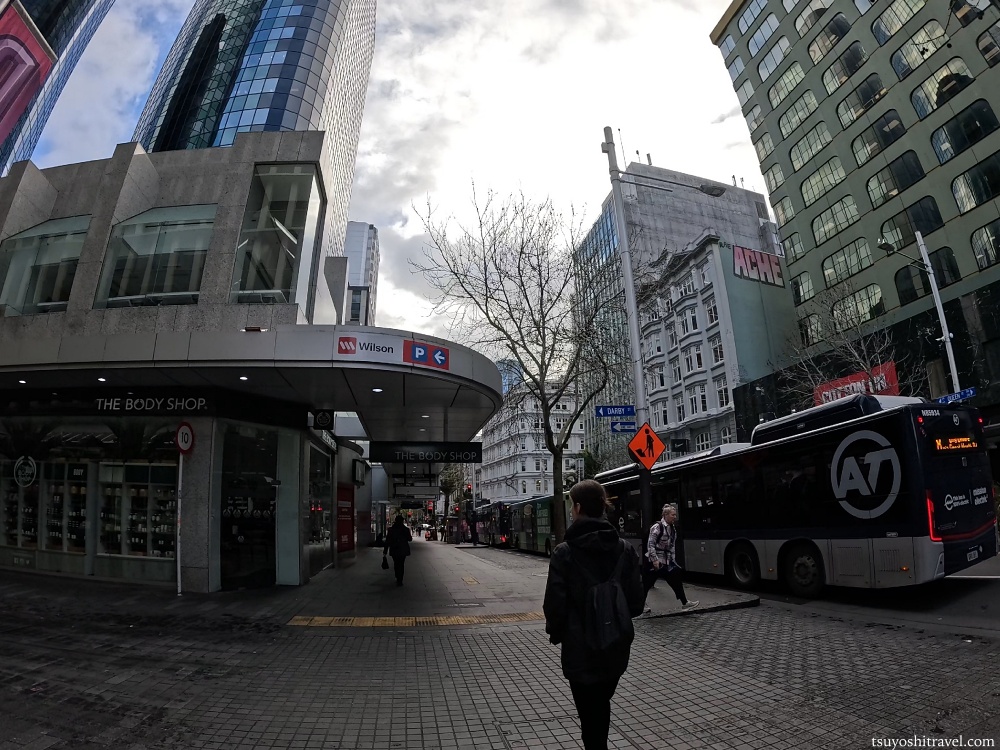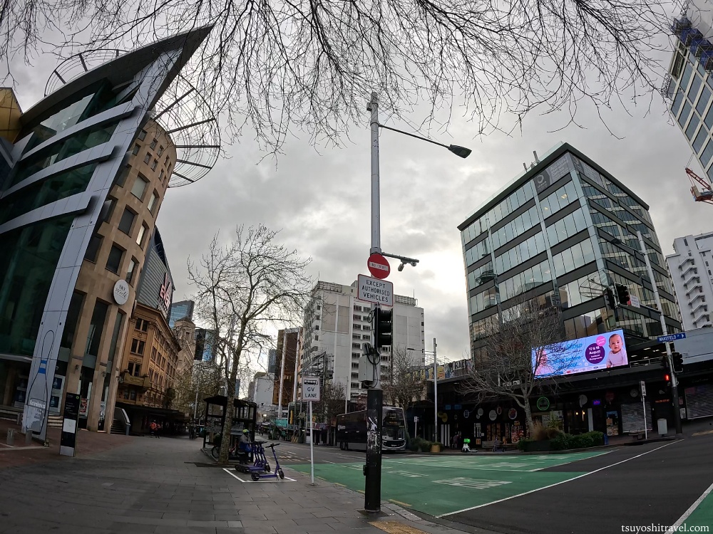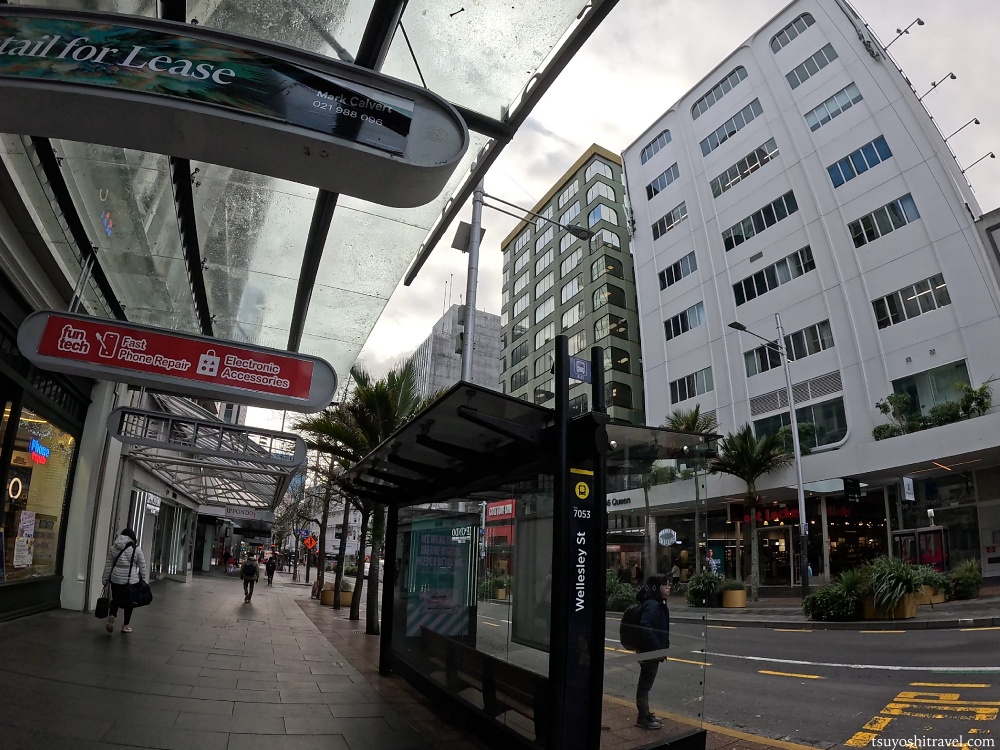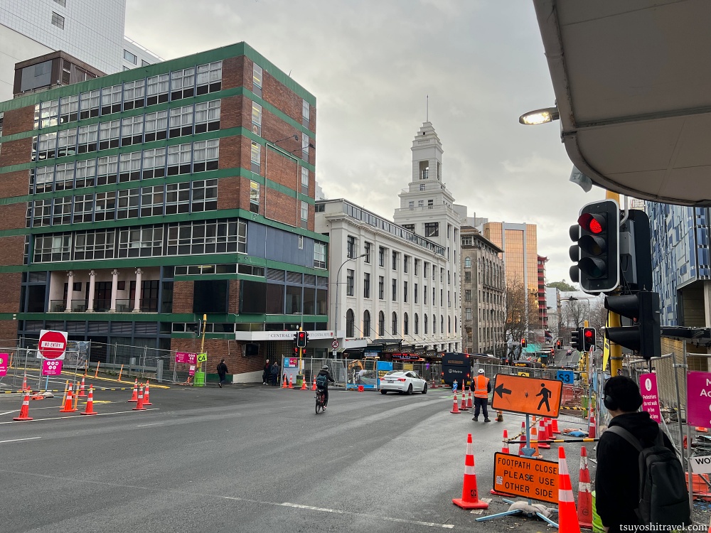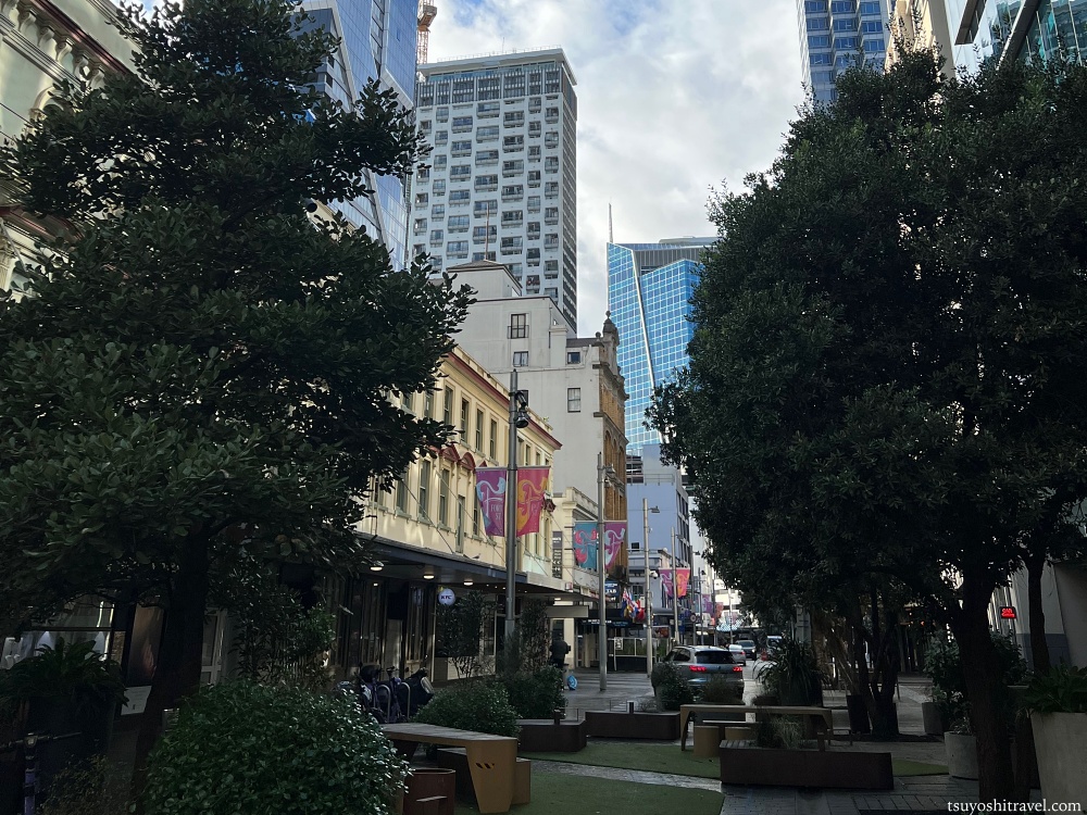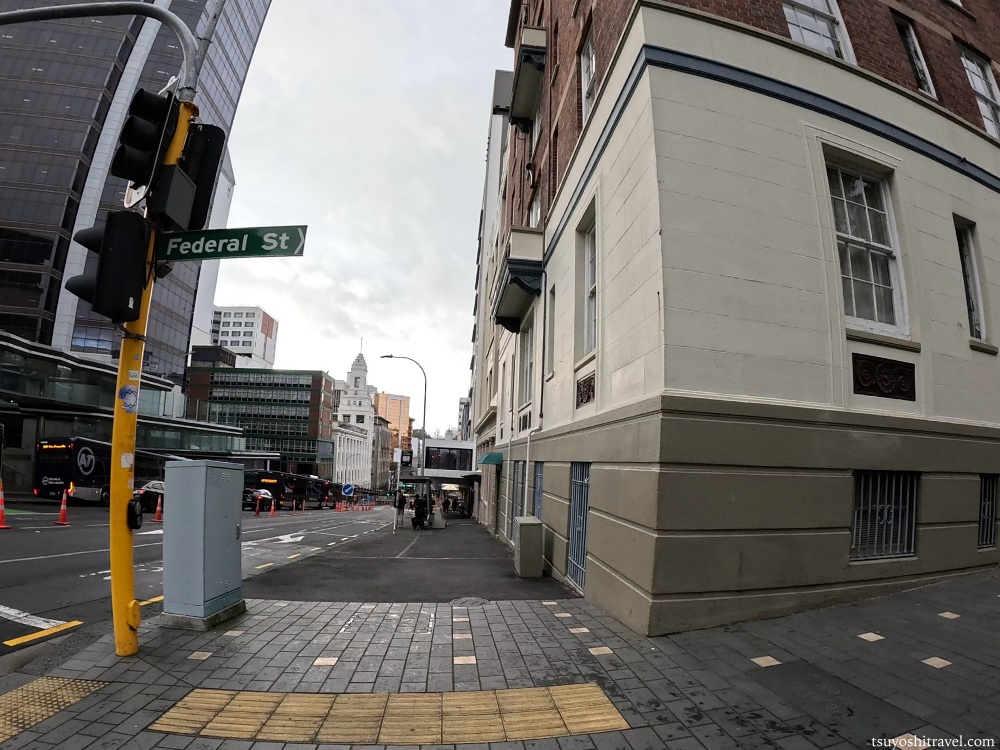 まずホテルを出ると、クイーンストリートの西側の通りであるホブソンストリートに出ます。