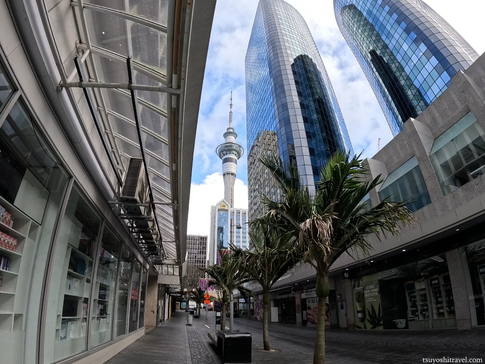 この通りを、まっすぐ北の方向へと向かっていくわけですが、近くにはスカイタワーが見えます。