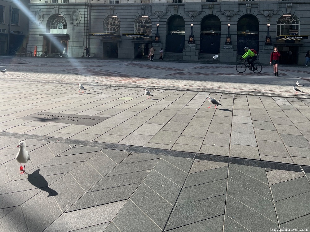 駅舎の目の前の、クイーンストリートにはたくさんの海鳥でしょうか・・・