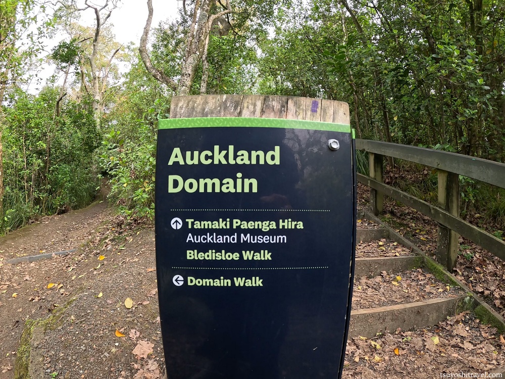 オークランドドメインを歩いていると、ようやく案内標識に出会いました。