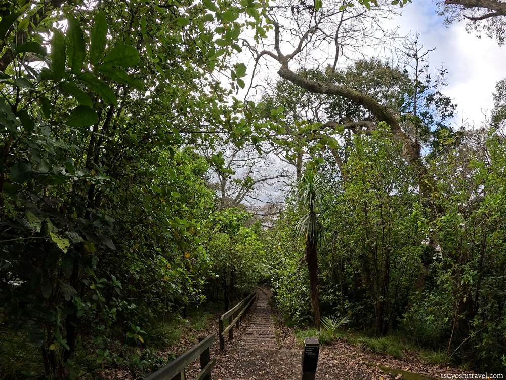 オークランド・ドメイン内の山道を歩く