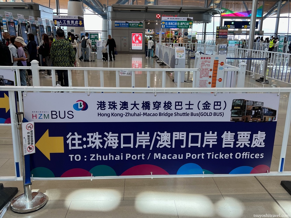 チケットを購入して先に進むと、マカオ行きと珠海行きの乗り場を示す看板が出てくるので、マカオ行きのバス乗り場の方向に向かう。