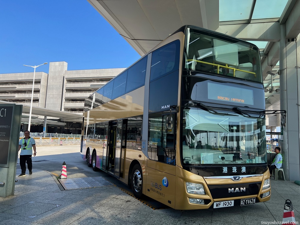 今回香港の宿泊ホテルから港珠澳大橋香港口岸までバスで向かい、港珠澳大橋香港口岸にて出境審査を済ませた後、バスを乗り換えて、港珠澳大橋を渡りマカオに入境することとなる。