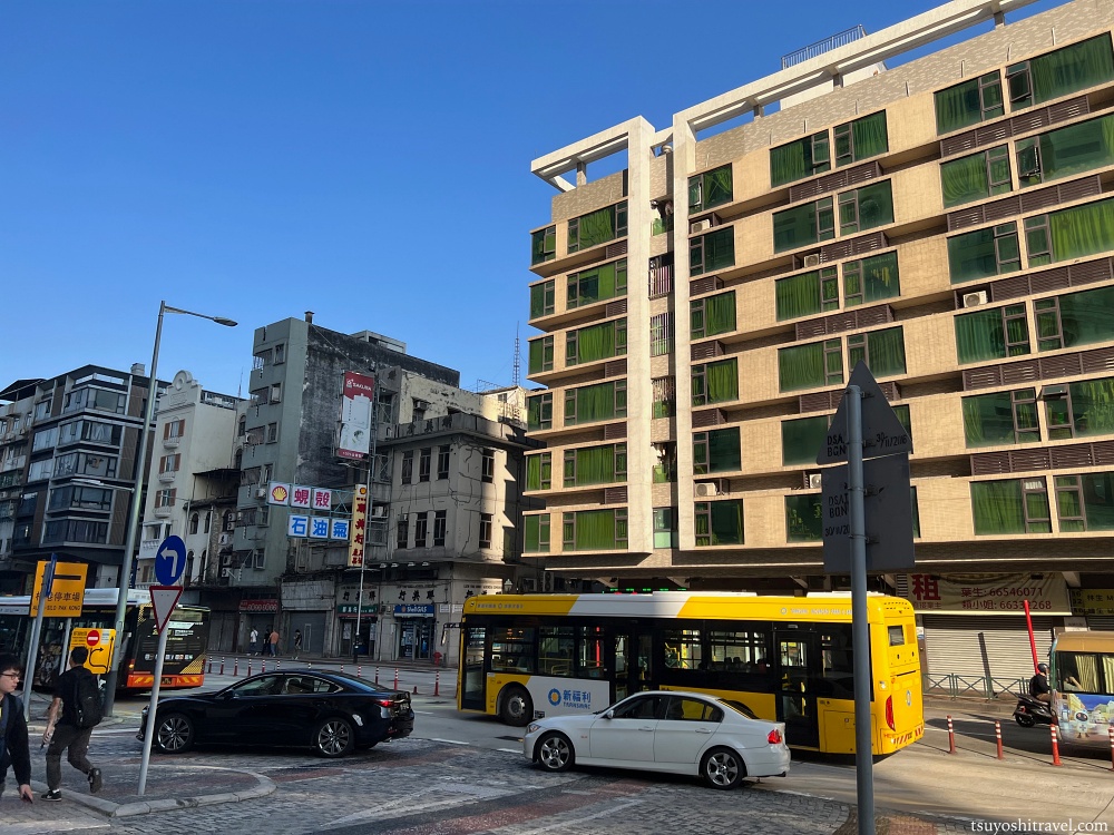マカオの入境検査を通過し、再びバスに乗車してマカオの街中に入ってきた。