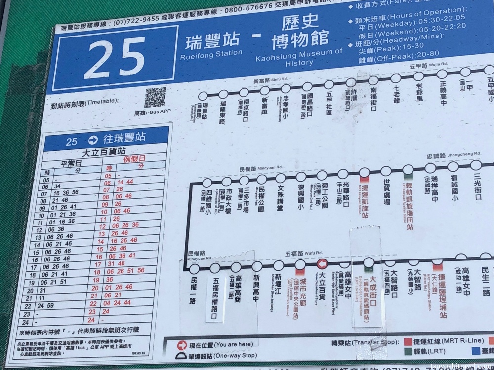 バスの時刻表も当たり前だが、全て中国語で記載されており、なんと無く意味が分かるものが多い。