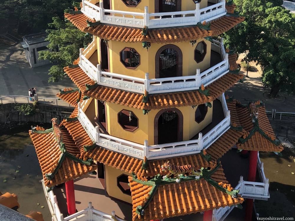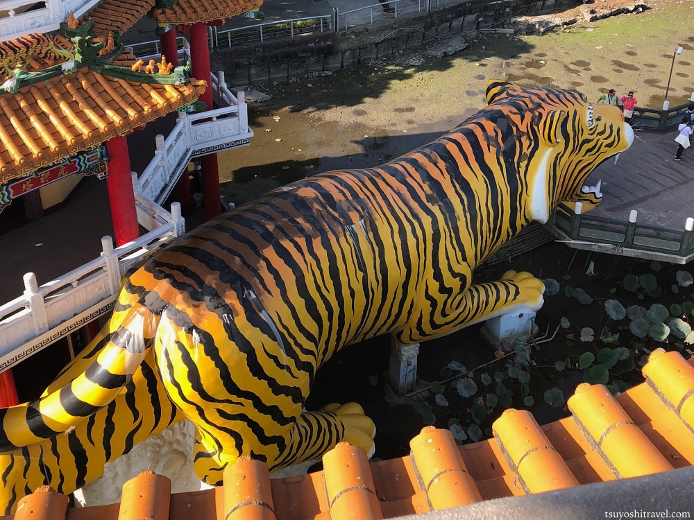 蓮池潭で特に有名なのはこちらの龍虎塔である。名前の通り、龍と虎がいる。