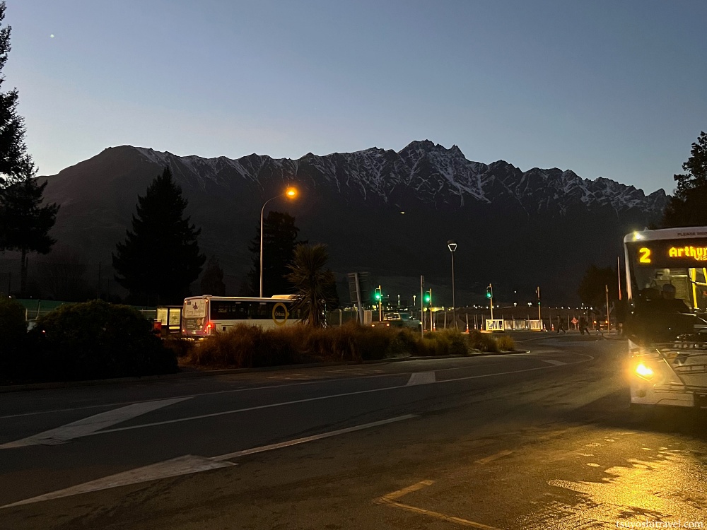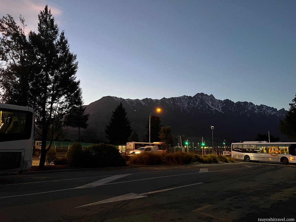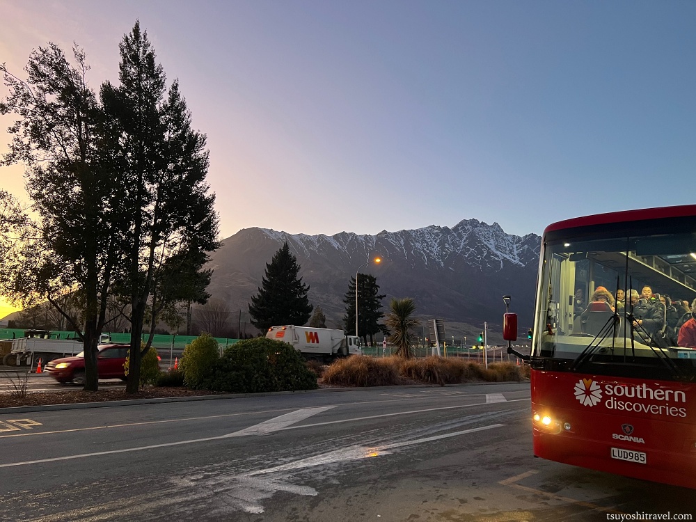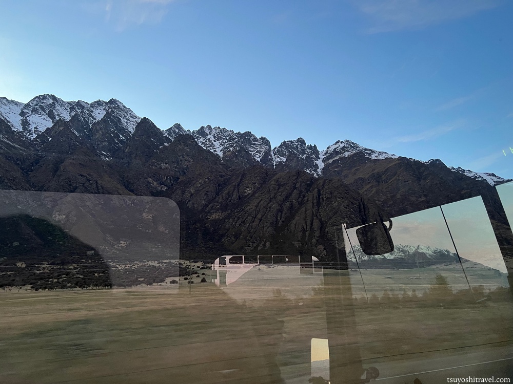 もう完全に夜も明けて、クイーンズタウンの美しい山々が見えてきました。