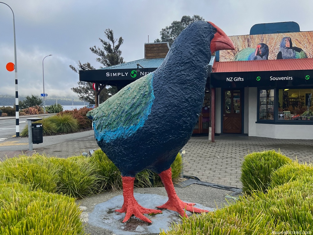 テアナウ湖の近くには、ニュージーランドの絶滅危惧種「タカへ」という鳥の像がありました。