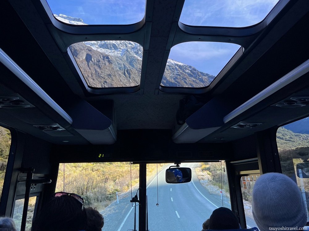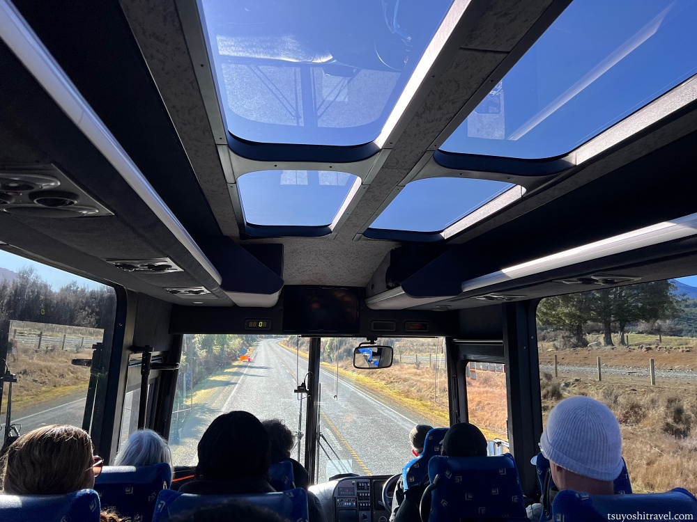 今回のツアーバスは、大きな窓以外にも、天井がガラス張りになっているので、思っている以上に後ろの席からでも景色を綺麗に見ることができます。