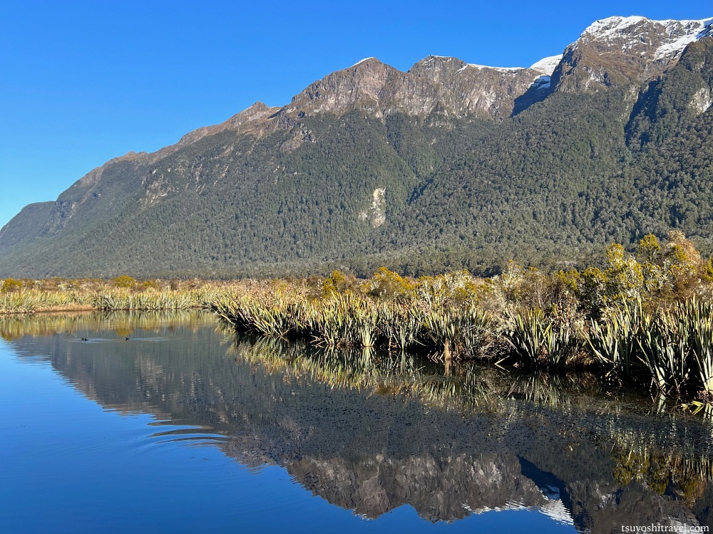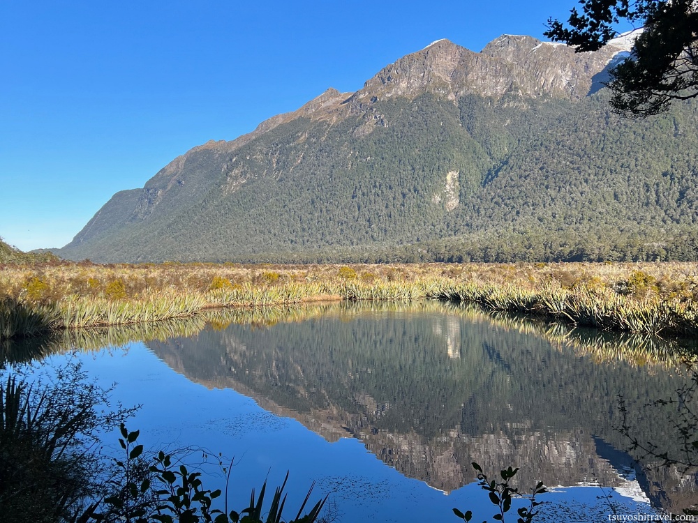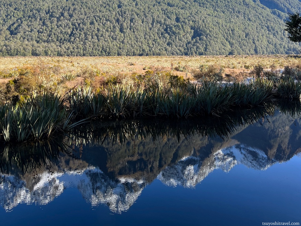 ミルフォードサウンドへの寄り道の中でも、私が最も立ち寄ってみたかったミラー湖(Mirror Lakes)に到着しました。