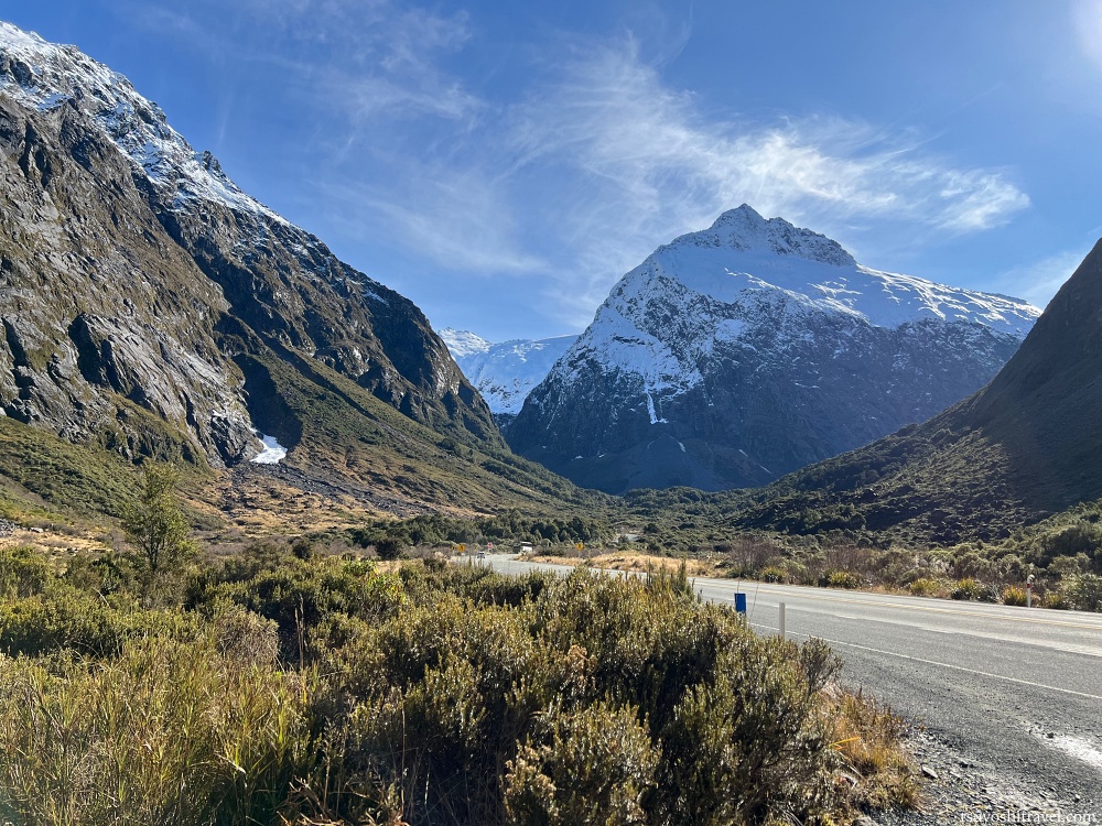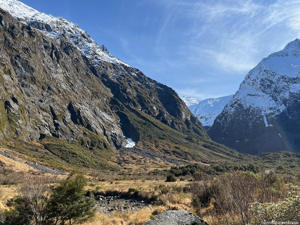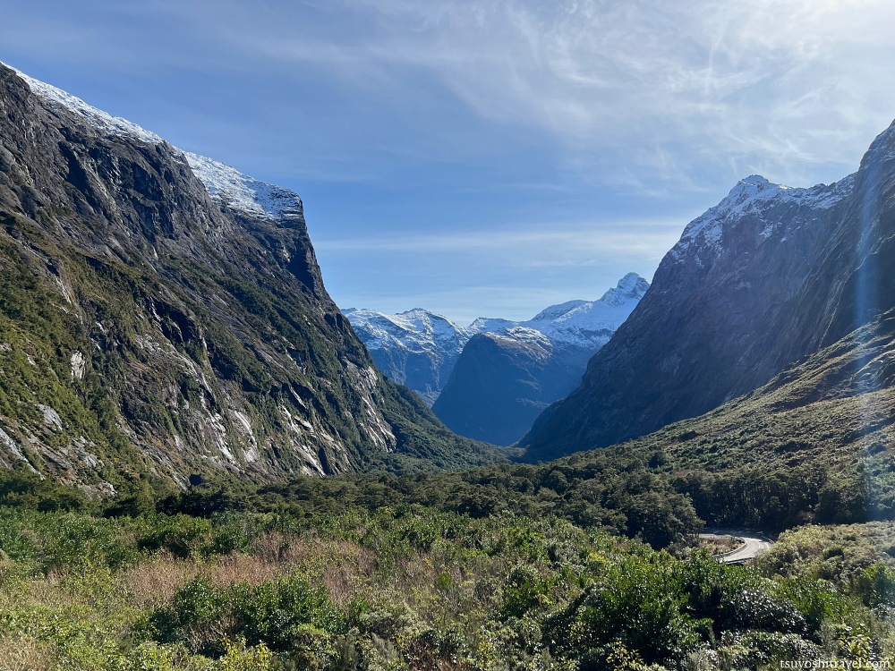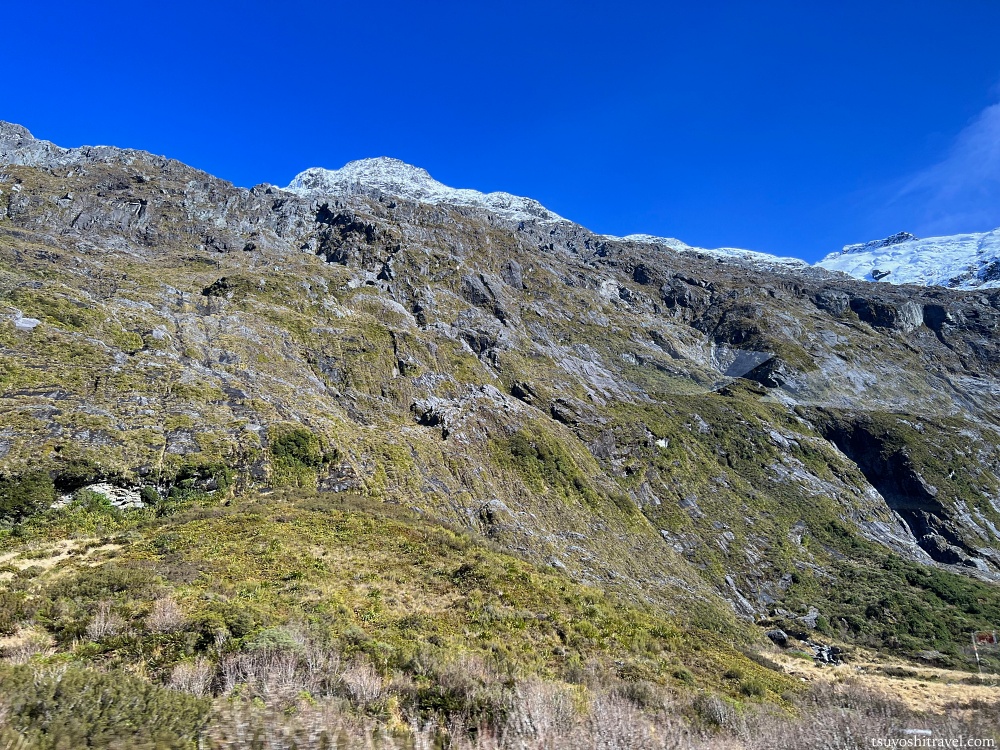 ミルフォードサウンドに近づいているのか、少しずつ写真でもみたことがあるような景色が見え始めてきました。