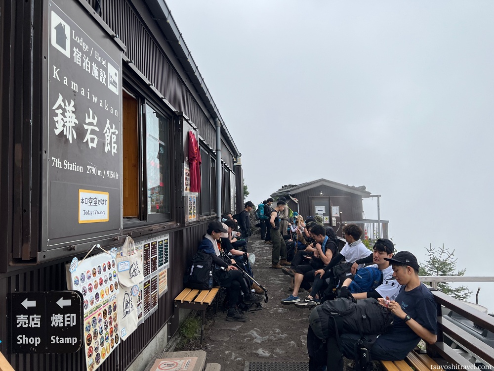 天気の状況を確認すると、山小屋がある7号目付近では、まだ雨は降っておらず、風が強い程度ですが、山頂付近は氷点下の気温で風速は30m/sほどの台風並みの強風が吹いているとのこと。