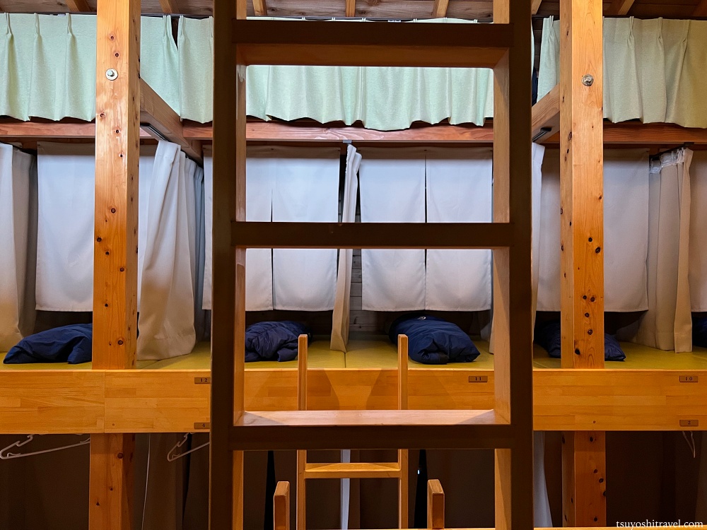 カーテンで仕切られたドミトリータイプの部屋がありますね・・・