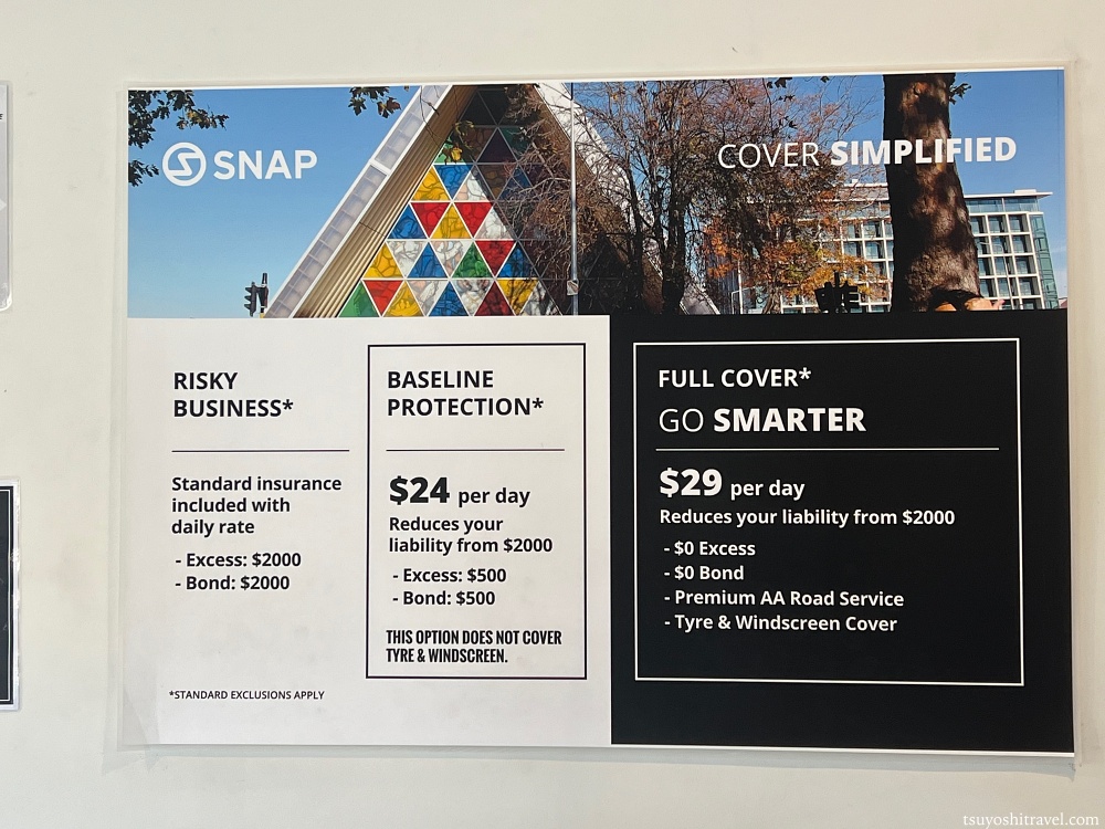 SNAP独自の保険も店頭で借りた際に紹介されましたが、今回のプランでは日本での予約時に任意でのフルカバーの保険もオプションでつけているので今回はお断りしました。
