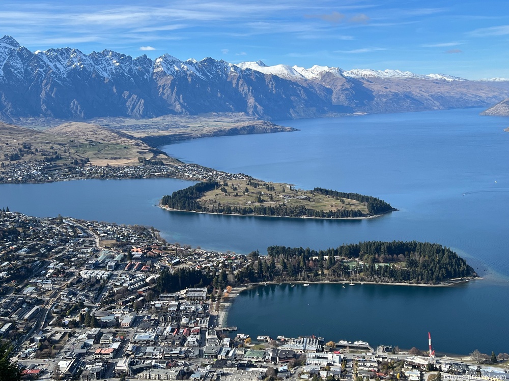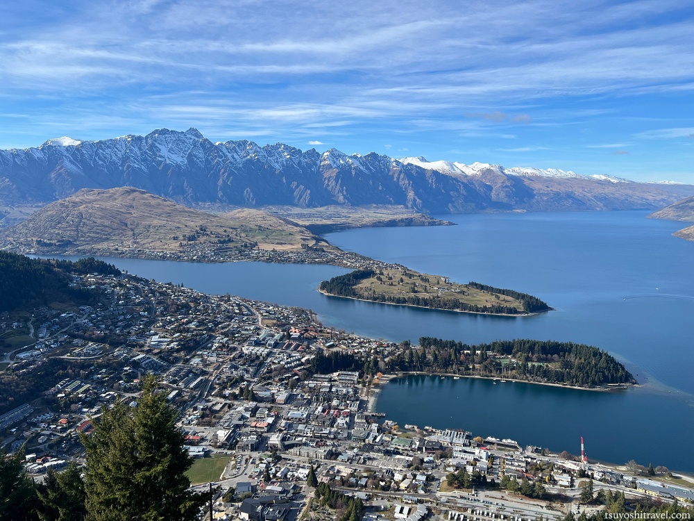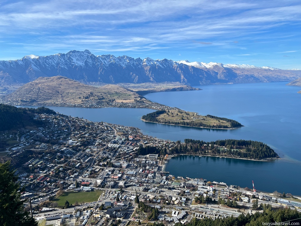 ワカティプ湖と、クイーンズタウンの街並み、どちらも素晴らしい光景です。