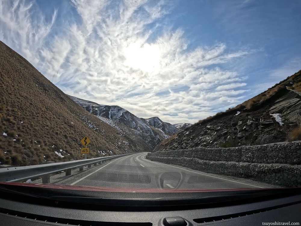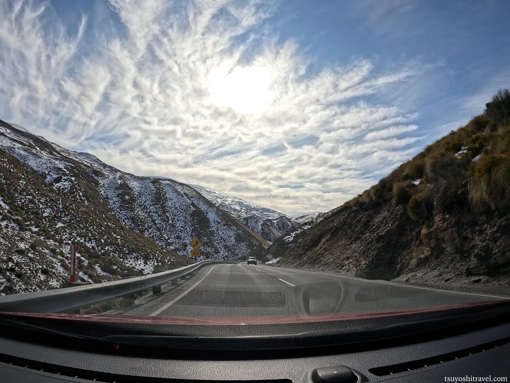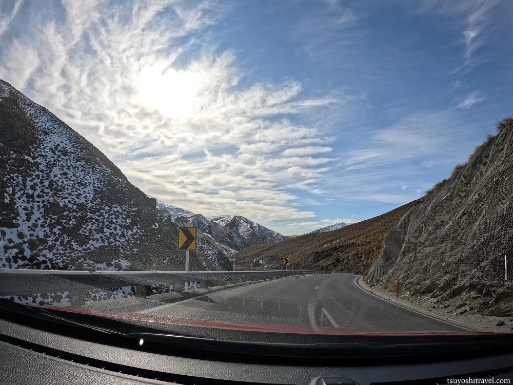 ニュージーランドでも最も高い地点(1121m)を通る道路で、冬季は雪と氷に覆われ、通行が困難になることもあるようです。