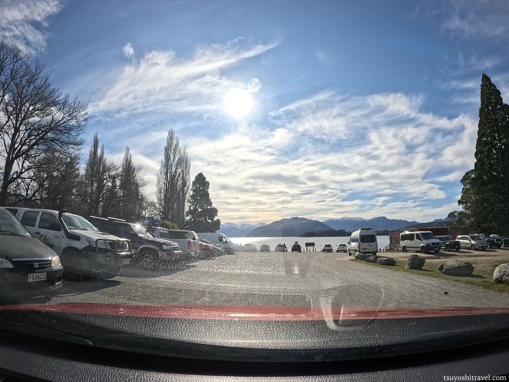 ワナカの街のシンボル、ワナカ湖に浮かぶ#ThatWanakaTreeを一目見るため、まずは駐車場に車を停めます。