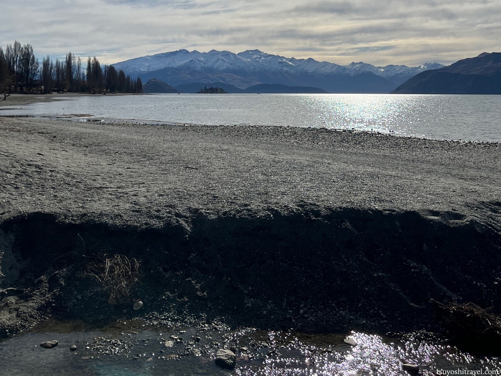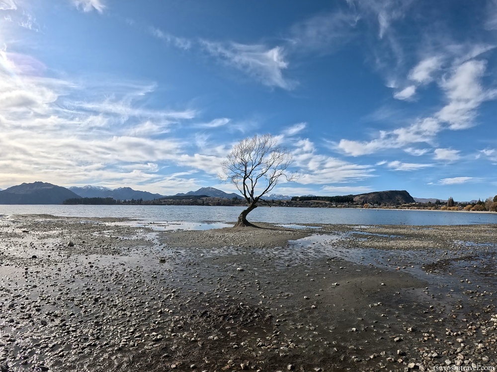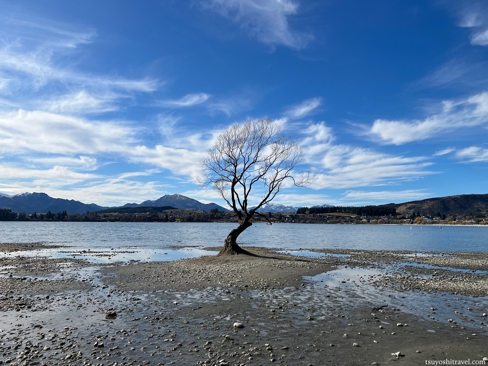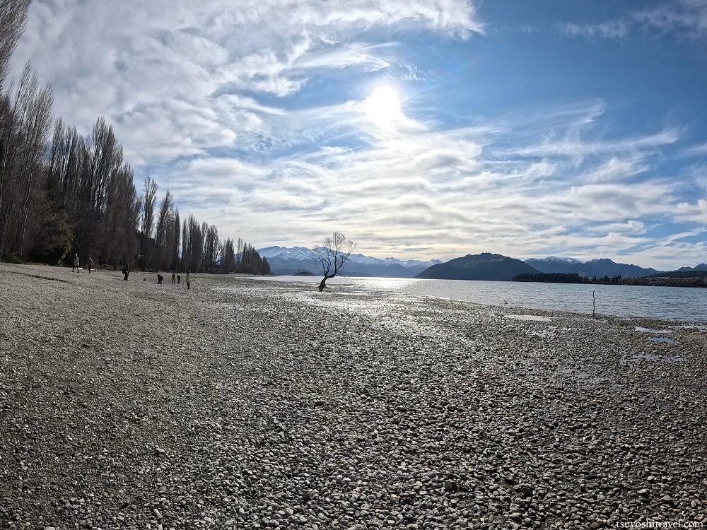 ちょうど私が訪れた時は、ワナカ湖の湖面の水位が下がっていたので、木の真下まで近づくことができました。