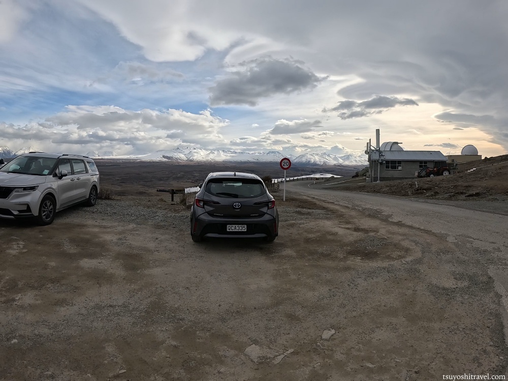 テカポの街の中心部に近い良き羊飼いの教会を出発して、車でおよそ15分のところにある世界最南端の天文台であるマウント・ジョン天文台(Mount John University Observatory)へと向かいます。