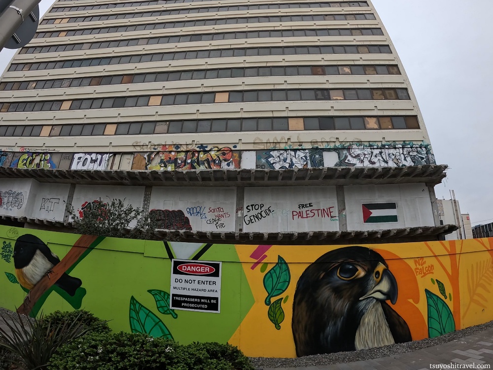 ただしそんなビルの工事用の外壁にも、ストリートアートがあり、復興の過程にあるクライストチャーチの街の力強さを感じます。