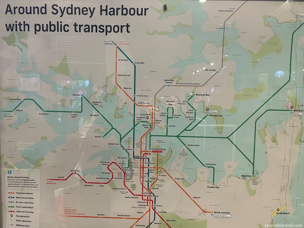 シドニー湾内に張り巡らされたシドニーフェリーの路線網は、まるで大阪の地下鉄のようです。