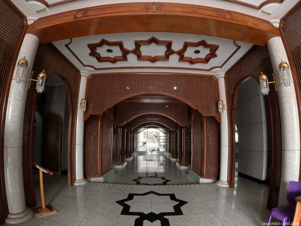 こちらは裏口のエントランスからですが、モスク内部へと繋がる階段がシンメトリーとなっており、非常に精緻に作られていることがわかります。