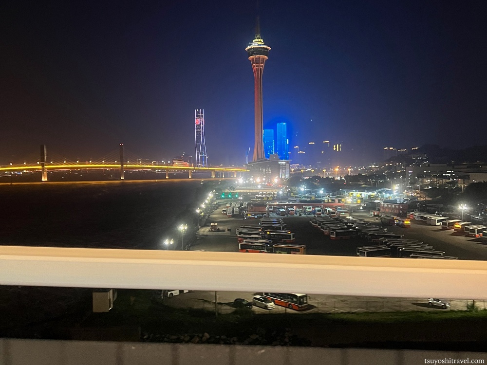 いきなり夜の写真になっているが、ホテルでチェックインした後に再びマカオ半島に戻った際にバスの車窓から撮影したものである。