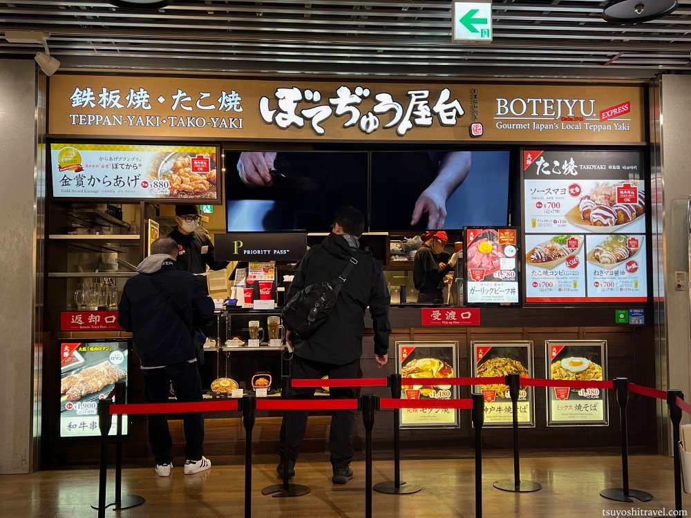 制限エリア外のぼてじゅう屋台にて、プライオリティパスを利用することができました。