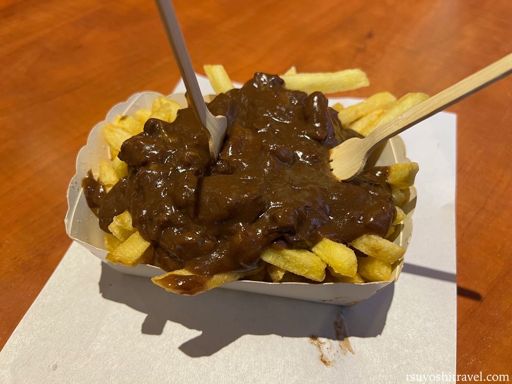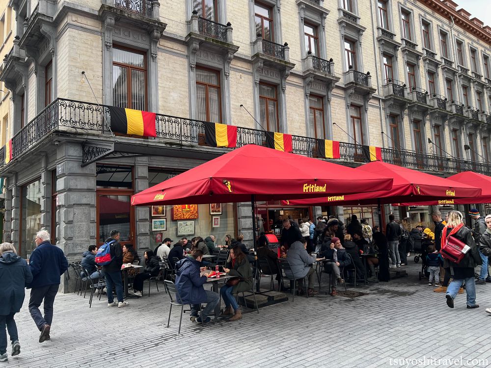 もちろん、現地ならではの食体験も忘れられません。ブルージュで食べた焼きたてのリエージュ・ワッフルは旅の最高のご褒美となりましたが、アントワープの「N1 Frituur」で食べた名物フリッツでは、苦い経験もしました。間違えて値段の高いビーフシチューソースを頼んでしまったのですが、ソース代だけで5.8€(約1000円)もしたことには、円安の影響もあって正直衝撃を受けました。