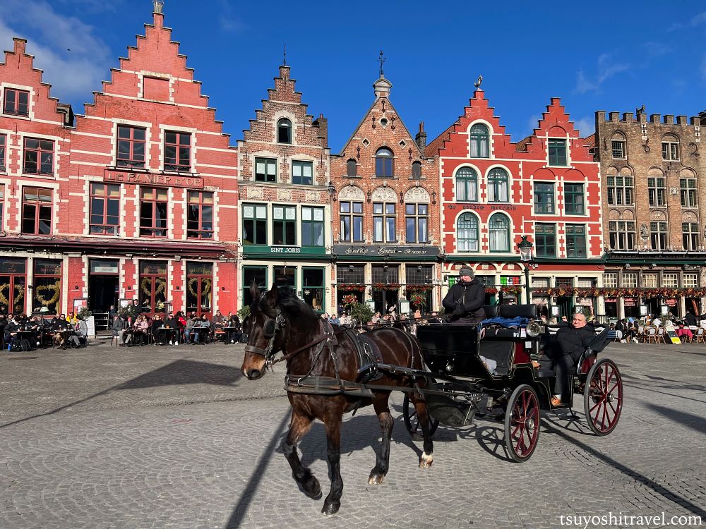 ブルージュは中世の面影が奇跡的にそのまま残る、ベルギーで最もロマンチックな水都です。滞在中は曇り空が続いていましたが、この日は運良く快晴に恵まれ、青空に映える赤レンガの街並みを堪能することができました。