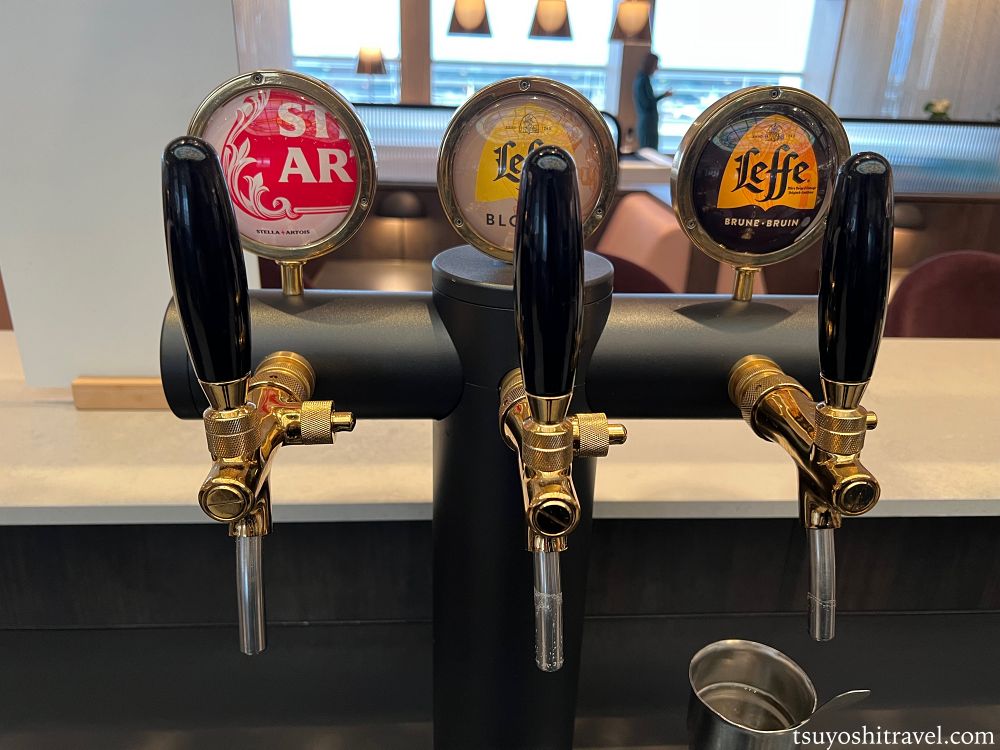 料理の品揃えも非常に豊富でしたが、なかでも嬉しかったのが本場のベルギービールを心ゆくまで堪能できたことです。特に写真一番左のベルギーを代表するビール「ステラ・アルトワ(Stella Artois)」は、驚くほど飲みやすく、ビール特有の苦味が苦手な方でもスルスルといけてしまう洗練された味わいでした。