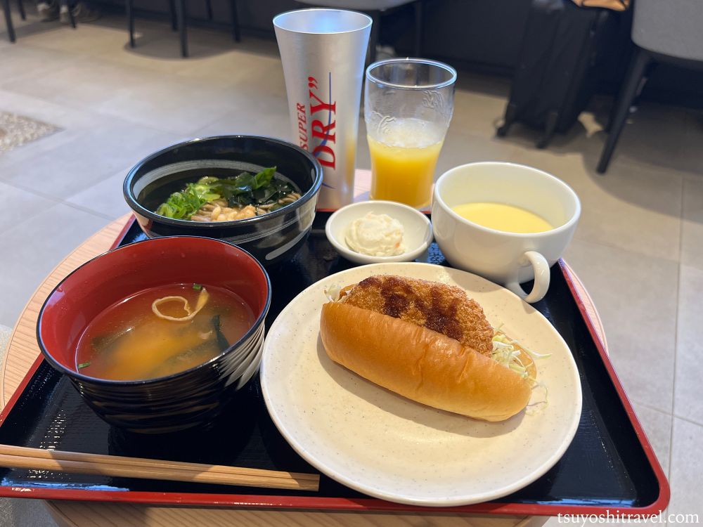 特に嬉しかったのが、食事メニューの豊富さです。うどんやそば、カレー、お味噌汁といった定番の日本食を、カウンターでオーダーしてから一つひとつ丁寧に作ってもらえるシステムになっています。出来立ての温かい料理を味わえるのは、これからしばらく日本を離れる身にとって、この上ない「最後の晩餐」となりました。