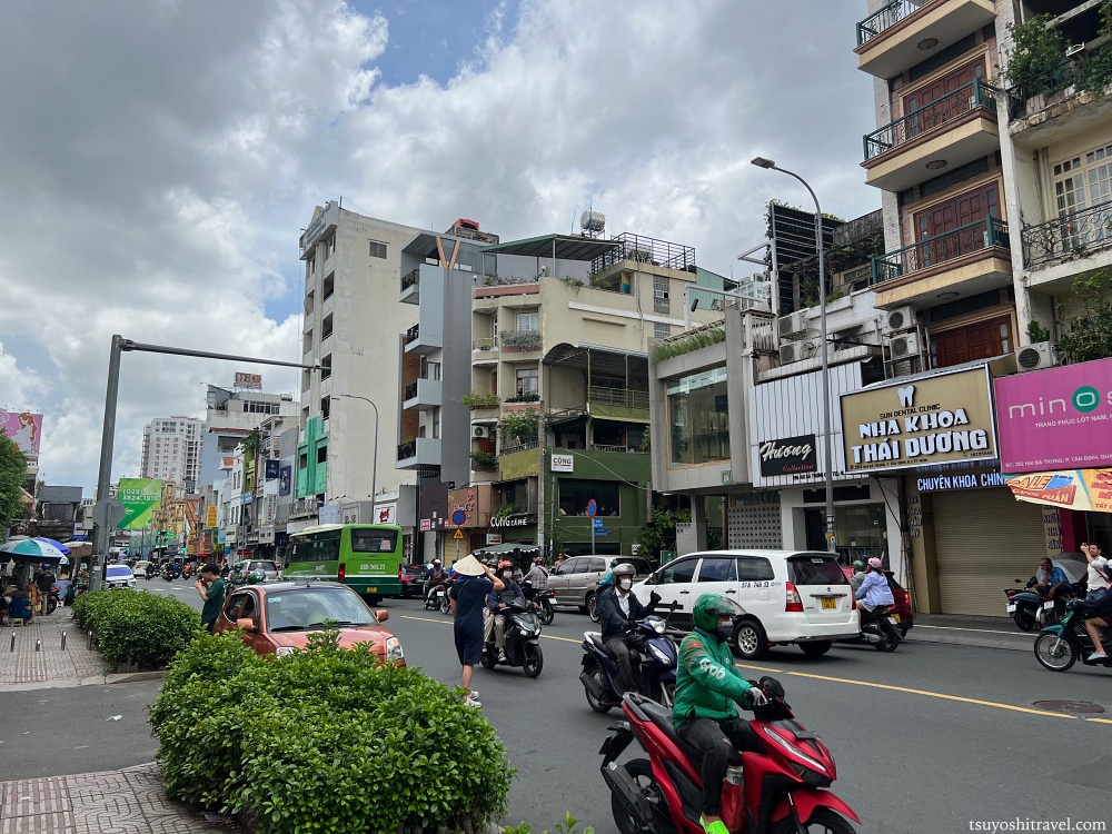 ホーチミンのバイクは止まってはくれないので、タイミングを見計らって渡る必要がある。