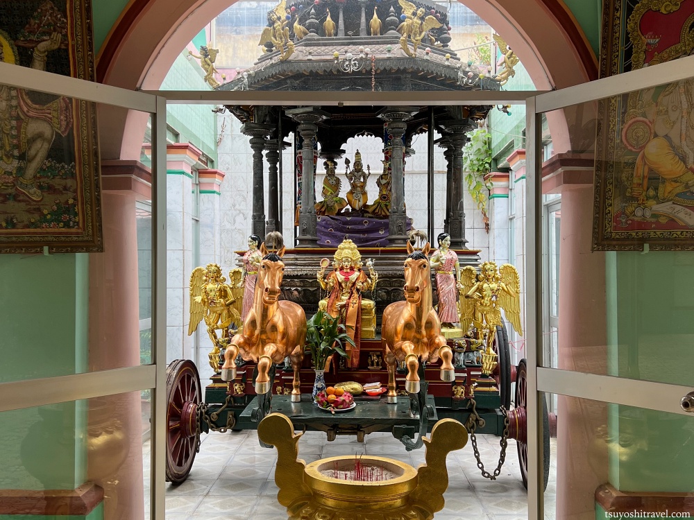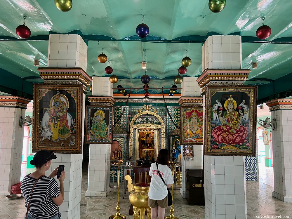 こちらのヒンドゥー寺院では周囲の建築物と一風変わっており、ちょっとした別世界に迷い込んだようだ。