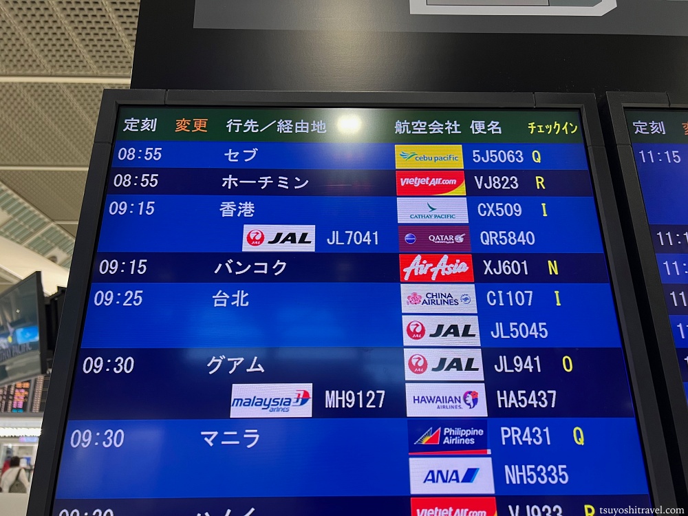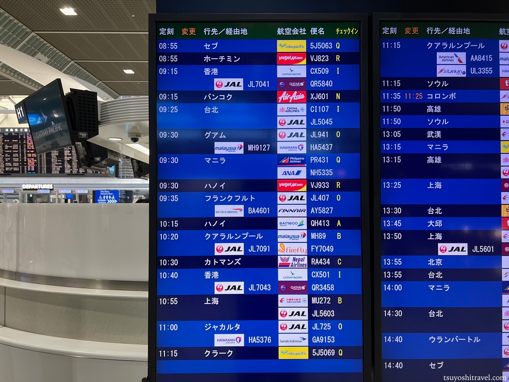 よくよく見ているとこの時間帯の出発はアジア方面行きの便が多いことが分かる。