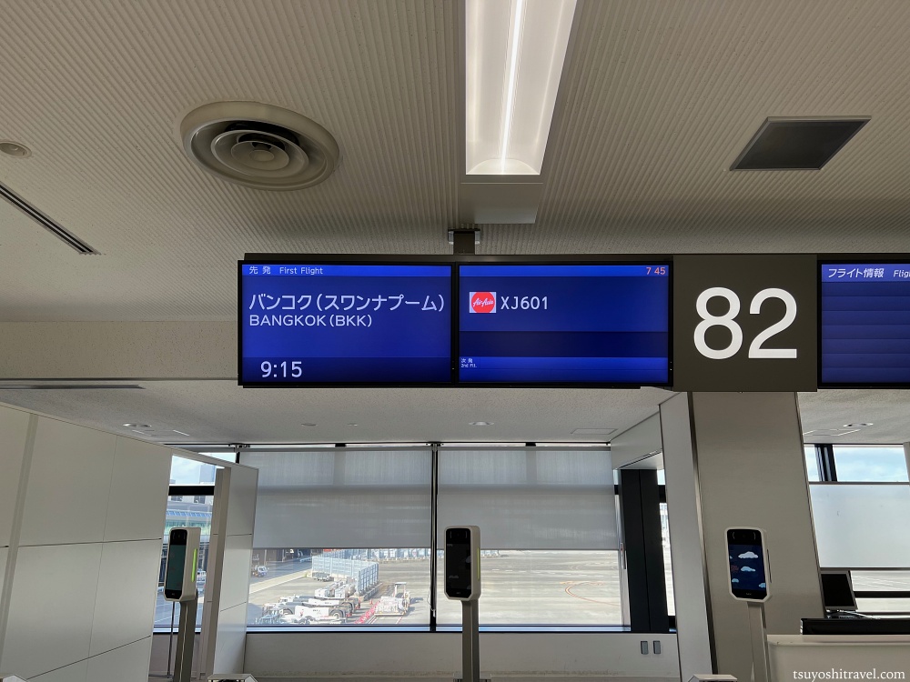 空港に到着しフライトボードを見てみると、09:15バンコク行き、エアアジアX601便と記載があり、今回はこちらの便に搭乗する予定となっている。