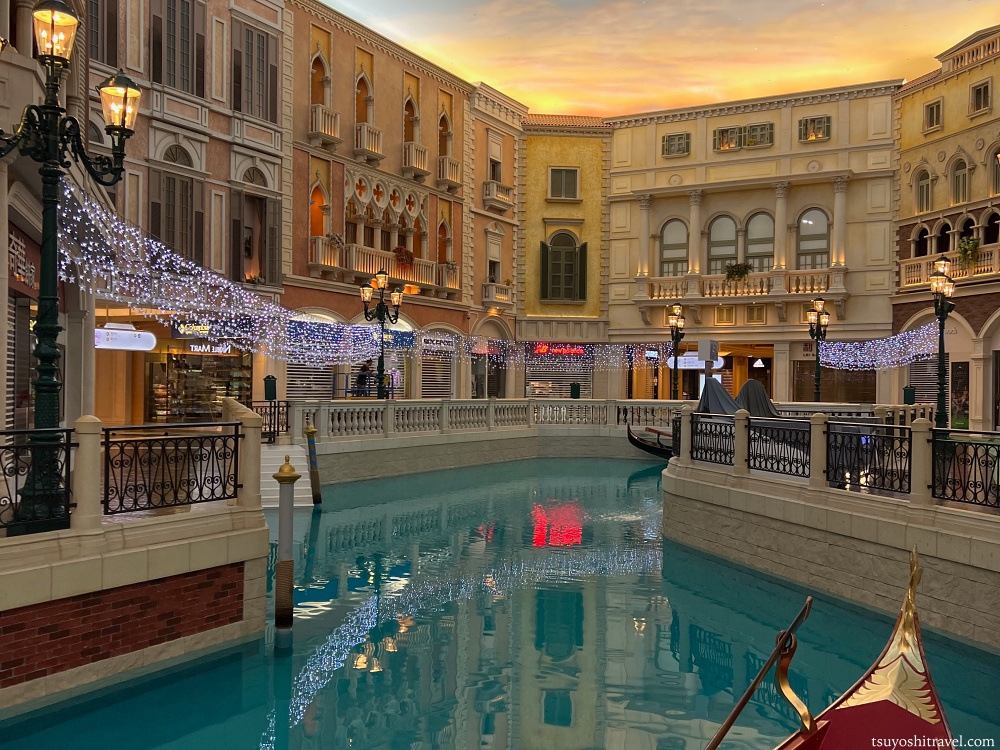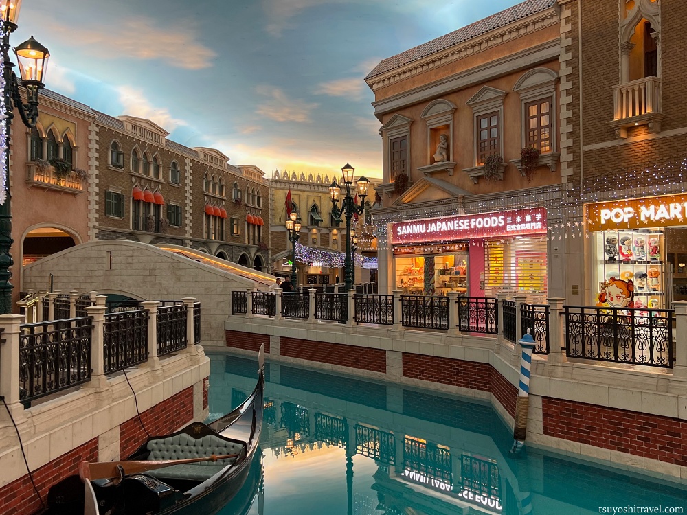 実は「ザ・ヴェネチアン・マカオ・リゾート」内にはベネチアの街並みを再現したショッピングセンターである「ショップス・グランド・カナル」がある。