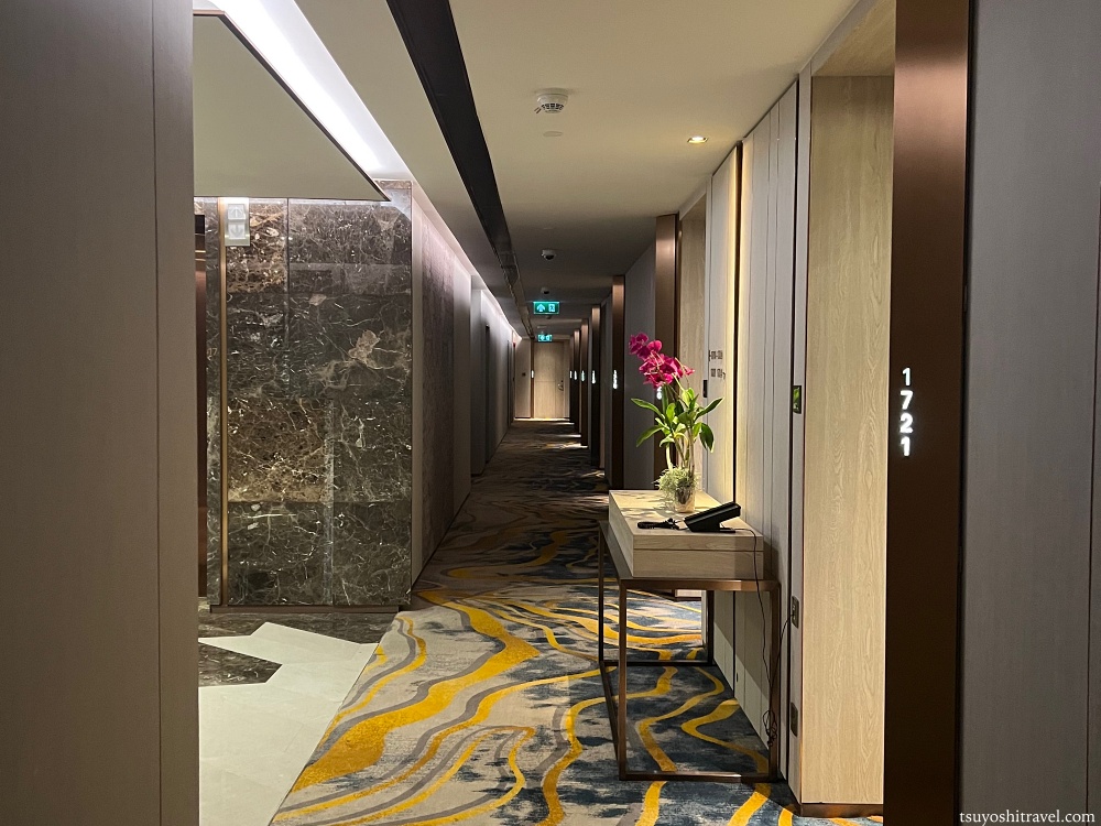 ホテル前の廊下も綺麗な内装となっており、花まで飾ってある。