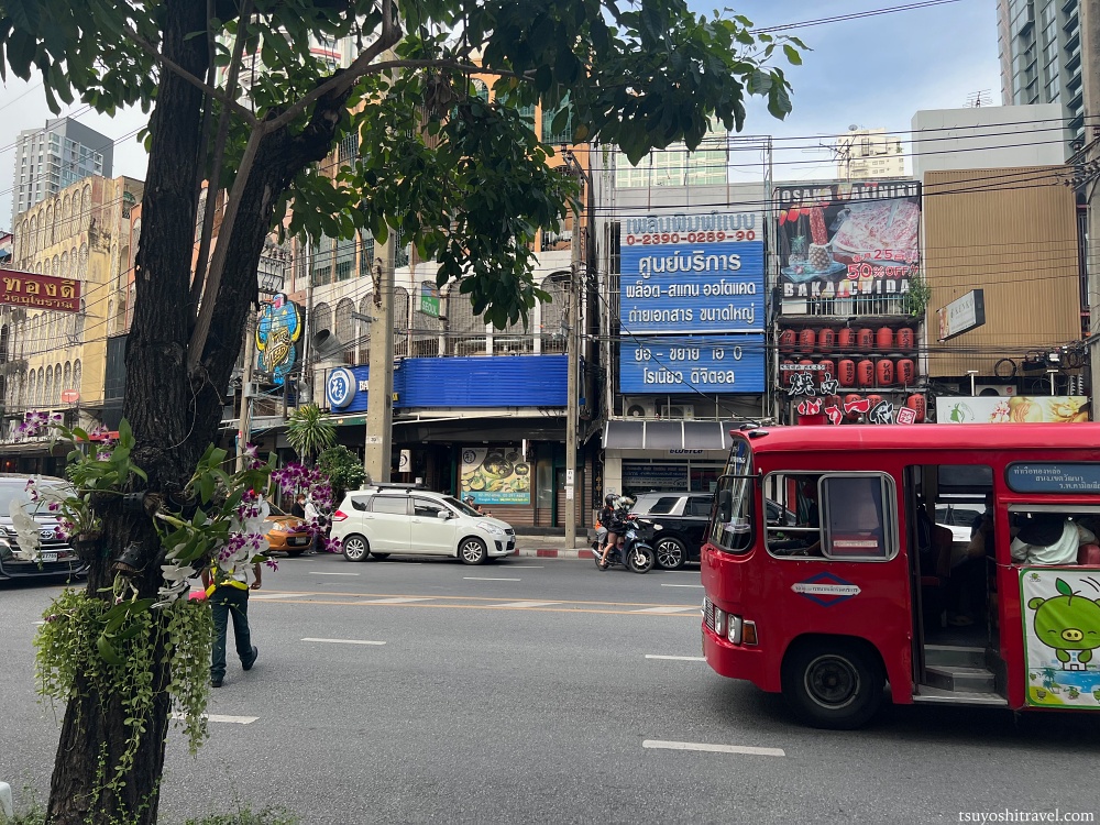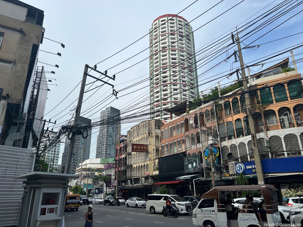 ホテルの前の道路はいかにもバンコクの街並みという感じで電線がやたら多い。