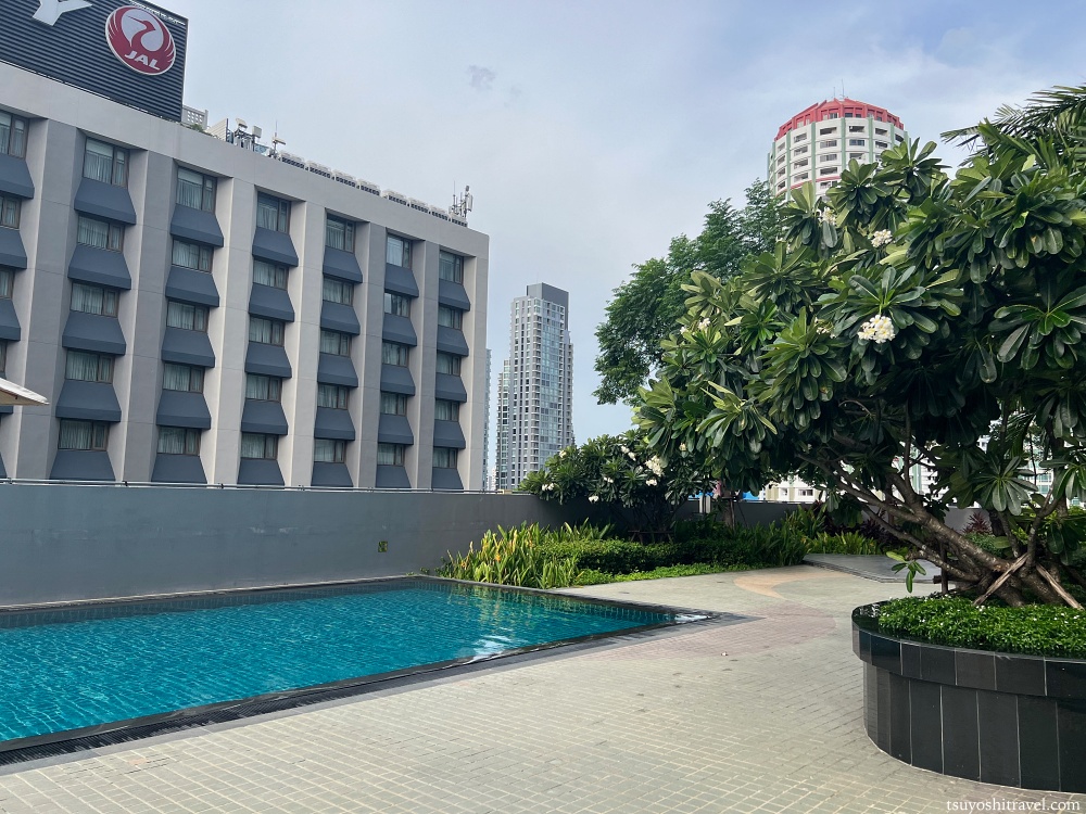 プールからはニッコーバンコクの隣にある「ホテルJALシティ」も見えている。