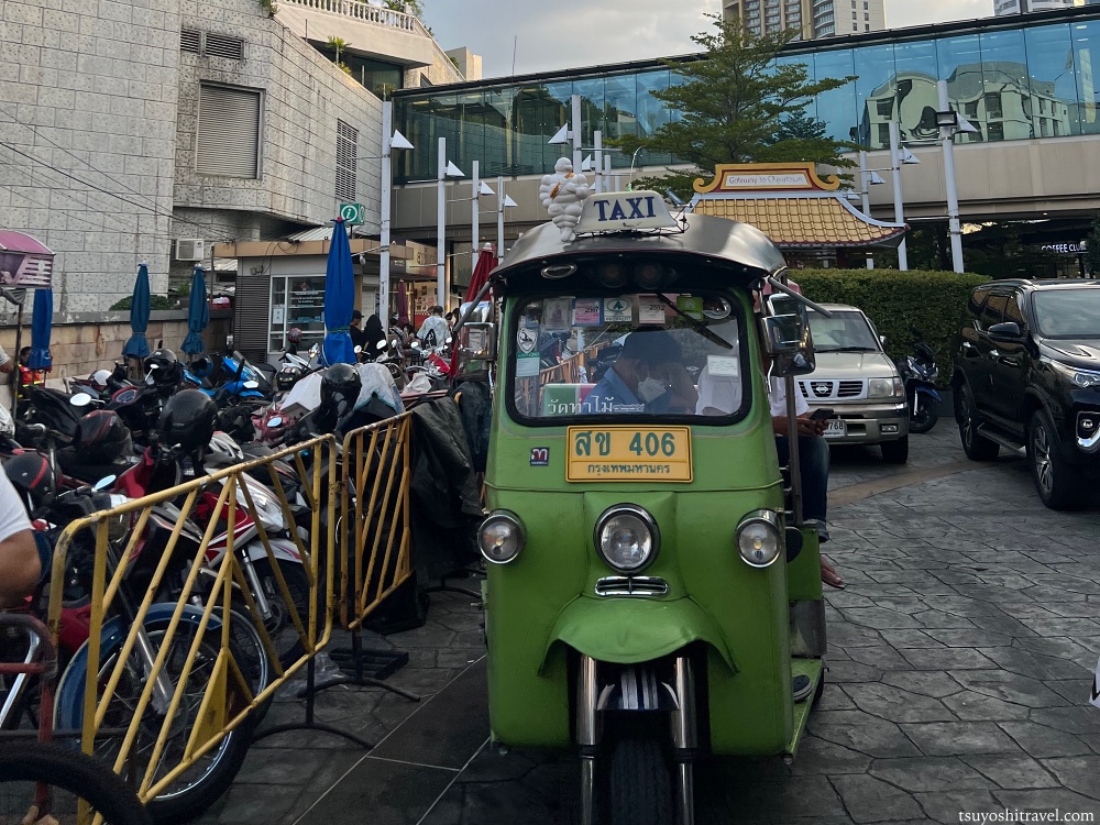 チャオプラヤ川の近くの商業施設「リバーシティ バンコク」に到着したところ、バイクタクシーを発見した。