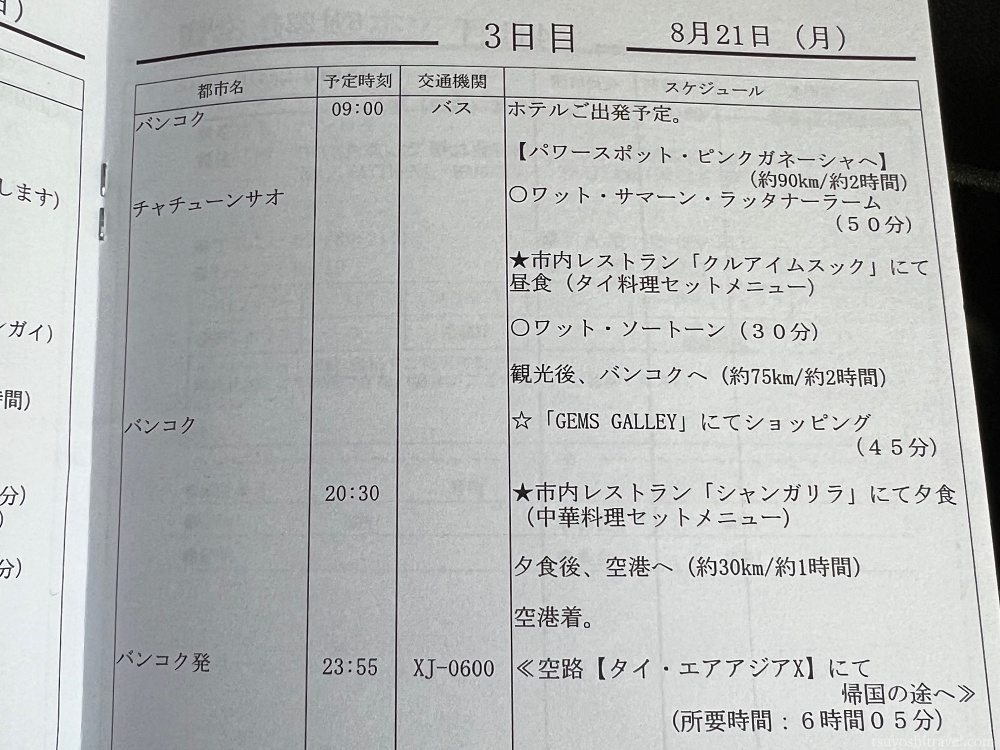 阪急交通社発行のツアーガイドを見ると分かりやすいが、最終日も観光の予定が盛りだくさんである。