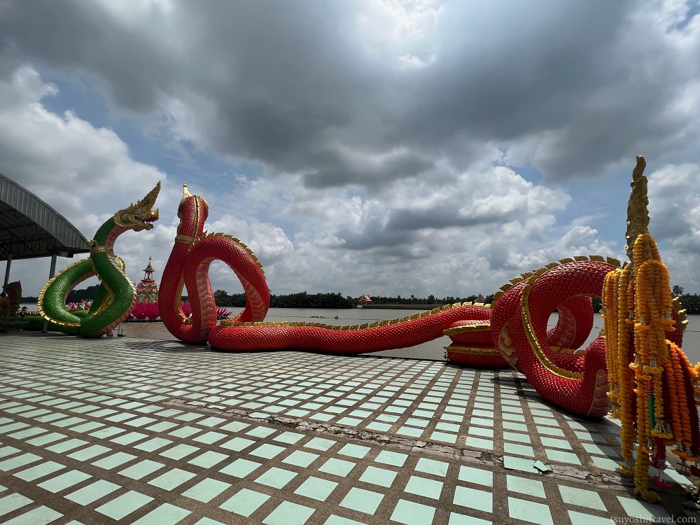 タイならではの色彩豊かな寺院「ワット・サマーン・ラタナーラーム」を満喫することができた。