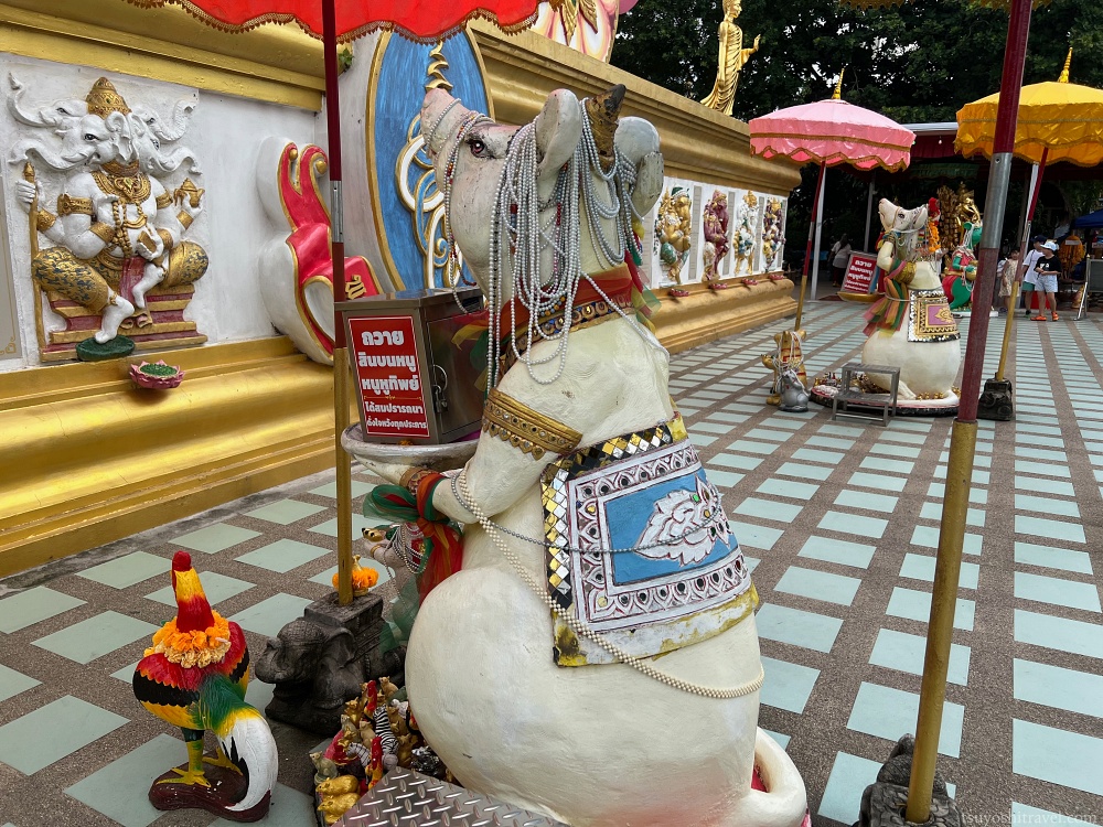 日本では一つの寺院で複数の神様を崇拝の対象とすることは少ないが、タイの寺院には様々な神様がおり、いわば“なんでもあり”のようだ。