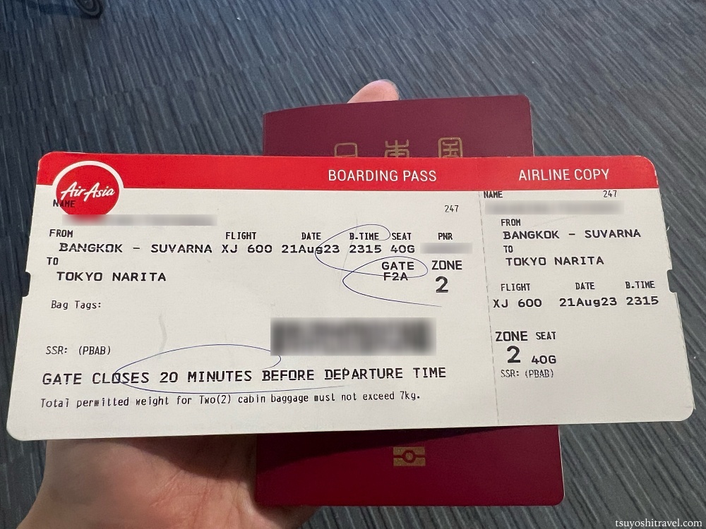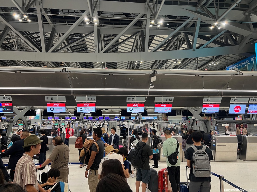 帰りも行きと同様にタイエアアジアXで帰国するので、エアアジアXのチケットカウンターに並び搭乗券を発券してもらう。